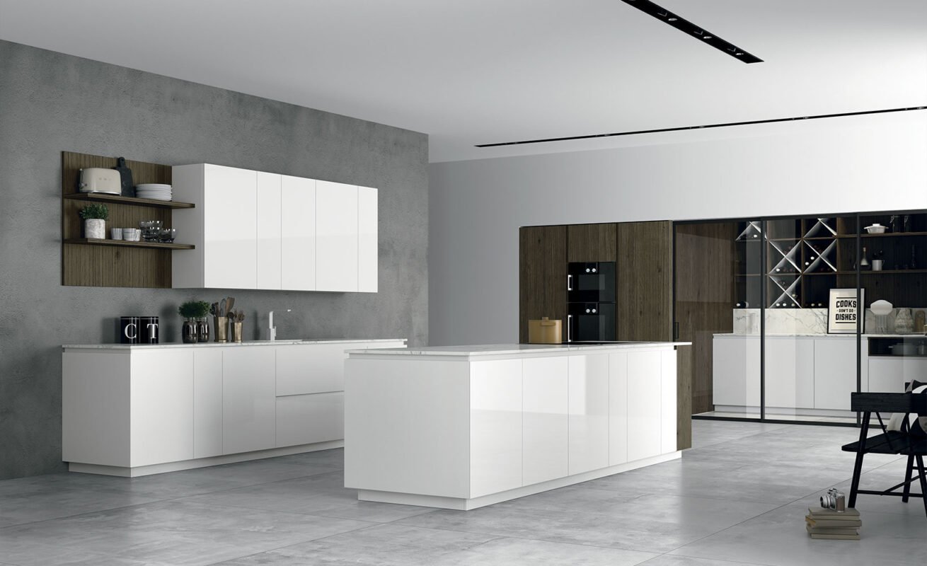 Lacquered kitchens create vivid environments. Matt lacquered kitchens stand out for their elegance and are ideal when combined with elements in wood. Metallic lacquers offer finishes that reflect the most classic furnishing trends. Satin and Crossed laquer are the newest.